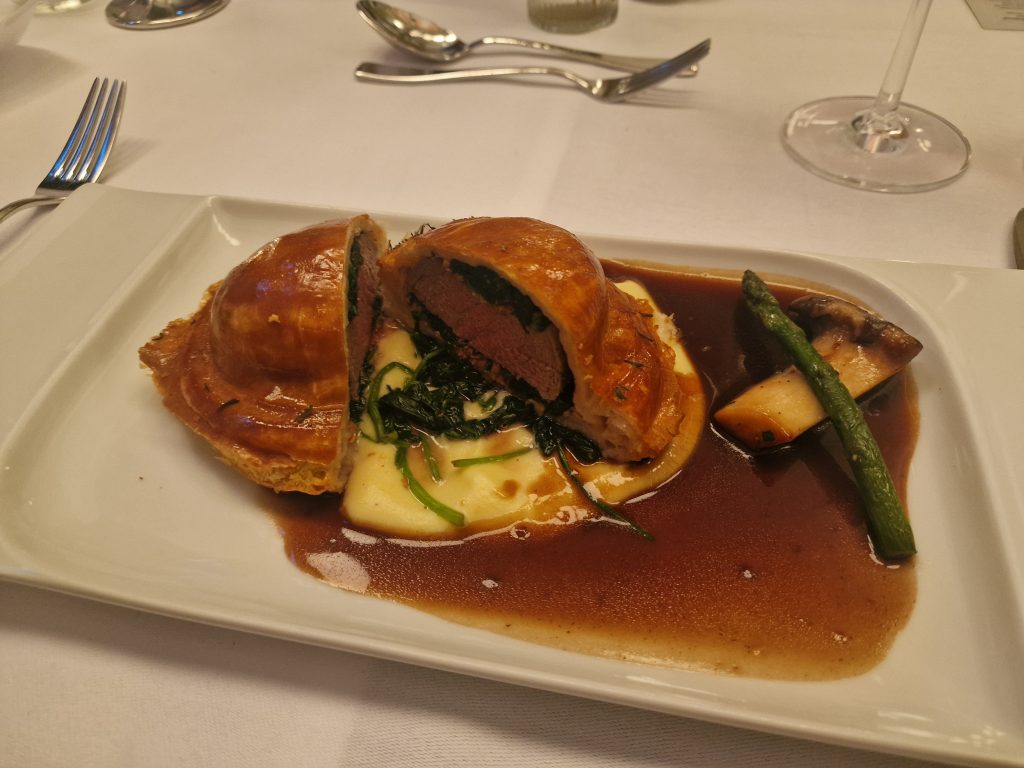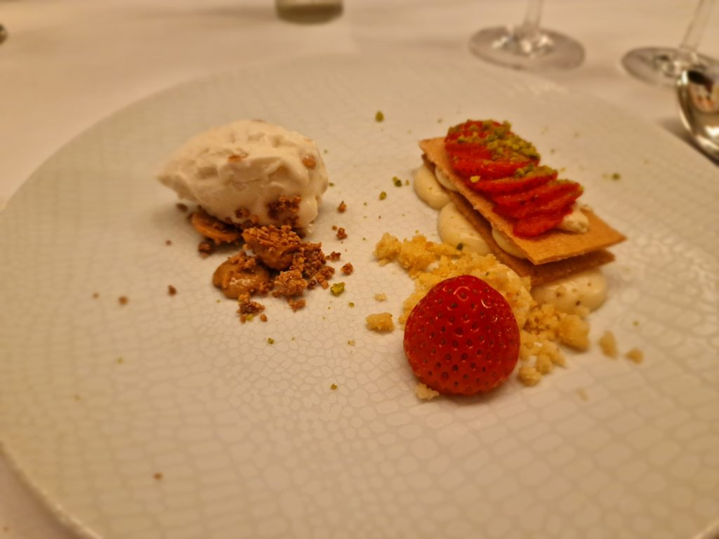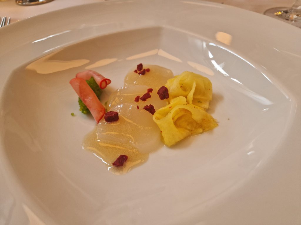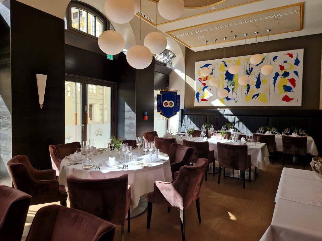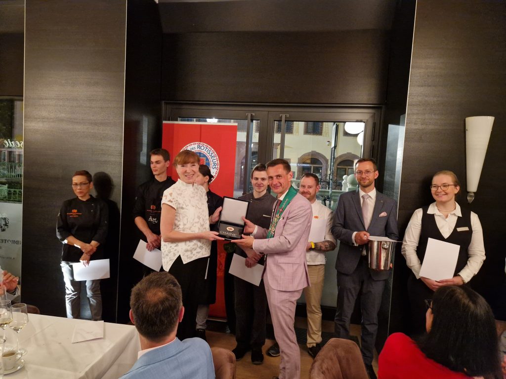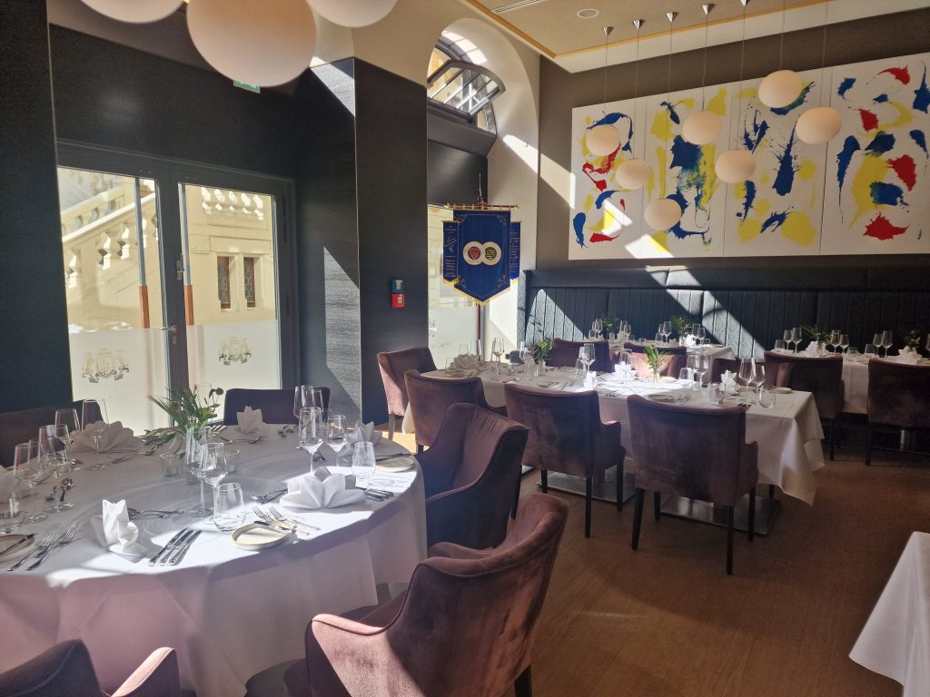 Aber was gab es denn Neues? Zum einen freuten wir uns darüber, dass Peter Peters, ein Leipziger Chaîne- Urgestein und langjähriger Bailli von Sachsen, nun neuer Bailli Délégué d‘Allemagne ist. Zum anderen konnten wir mit Maître Hôtelier Charlotte Holtmann ein neues Mitglied in unserer Bailliage begrüßen. Sie hat zum Jahreswechsel als General Manager die Führung des Grandhotels übernommen und sichert mit ihrer Mitgliedschaft den Bestand des Hotels als Chaîne-Haus. So war der Abend eine gute Gelegenheit zum gegenseitigen Kennenlernen. Für uns neu war auch das Restaurant. Erstmals trafen wir uns in der Brasserie Le Grand. Dem Namen machte das Küchenteam um Kai Becker mit einem französisch inspirierten 5-Gang-Menü alle Ehre. Überaus aufmerksam und freundlich umsorgte uns der Service unter Leitung von Markus Weller. Die Weinauswahl war harmonisch auf das Menü abgestimmt und selbst Sonderwünsche der Gäste wurden gern erfüllt